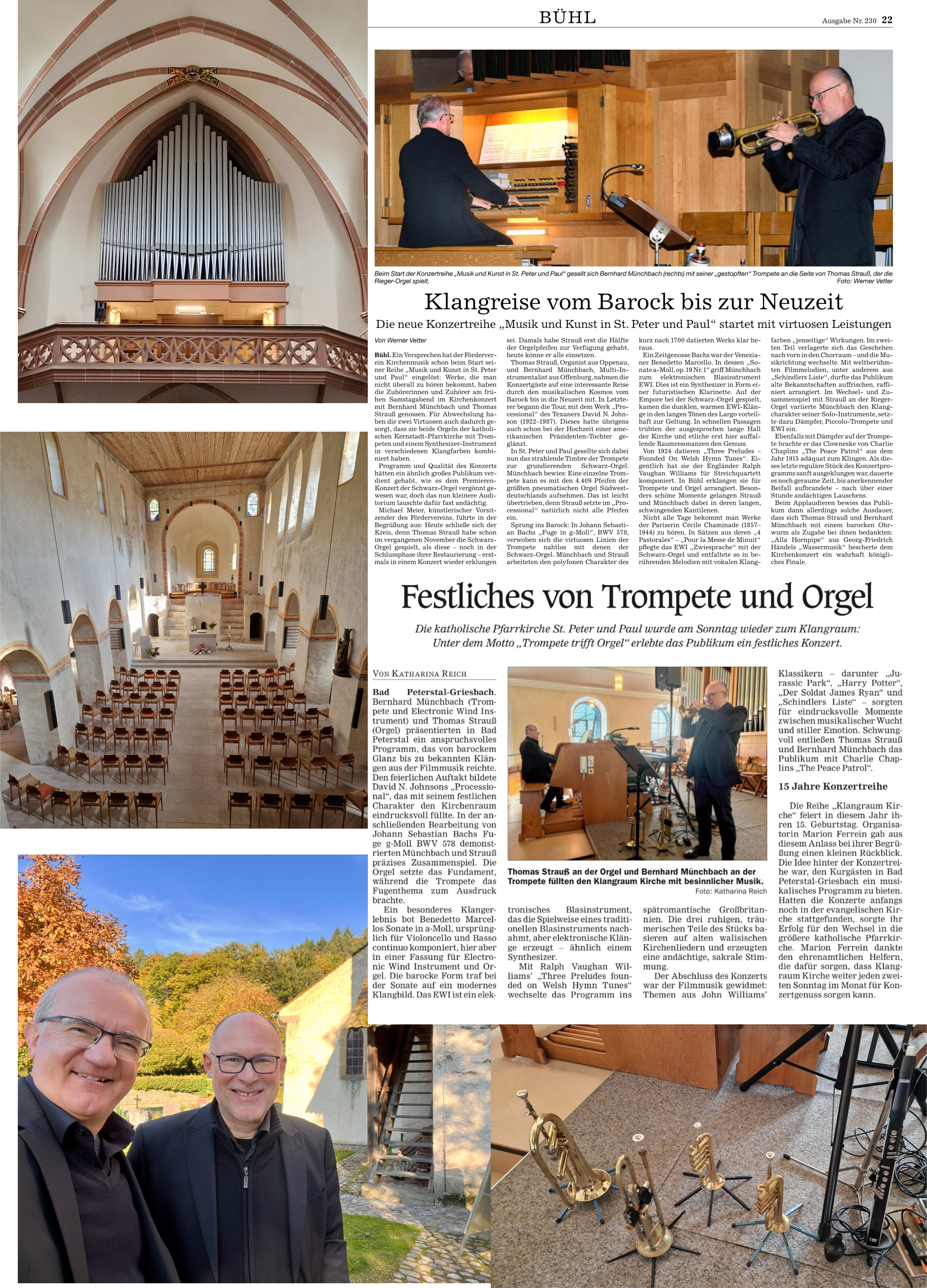 04.10.2025 Trompete-Orgel in Bühl (Kath. Stadtkirche Peter und Paul, Schwarz – mit Trompete und Synthesizer | Stadt Bühl)